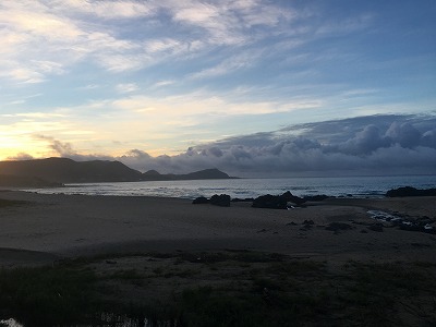 当サイトの管理人は、サーフィンをやらないので(汗)、早朝の散歩時に手広海岸を眺めてきただけでしたが、とても美しい海と、砂浜でした。